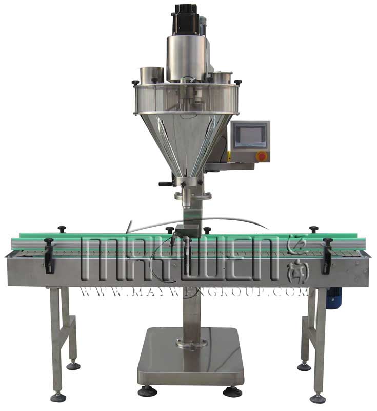 This Machine is a complete, economical solution to your filling production line requirements.can measuring and filling powder and granular. It consists of the Filling Head, an independent motorized chain conveyor mounted on a sturdy, stable frame base, and all necessary accessories to reliably move and position containers for filling, dispense the required amount of product, then quickly move the filled containers away to other equipment in your line (e.g., cappers, labelers, etc.).it fits more to the fluidic or low-fluidity materials, like milk powder, albumen powder, pharmaceuticals, condiment, solid drink, white sugar, dextrose, coffee, agriculture pesticide, granular additive, and so on.