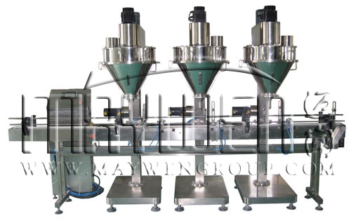 The Model machine is a complete, economical solution to your filling production line requirements. Can measuring and filling powder and granule. It consists of the Three Filling Heads, an independent motorized chain conveyor mounted on a sturdy, stable frame base, and all necessary accessories to reliably move and position containers for filling, dispense the required amount of product, then quickly move the filled containers away to other equipment in your line (e.g., cappers, labelers, etc.).it fits more to the fluidic or low-fluidity materials, like milk powder, albumen powder, solid drink, white sugar, dextrose, coffee, fodder, pharmaceuticals, agriculture pesticide, granular additive, dyestuff, and so on.